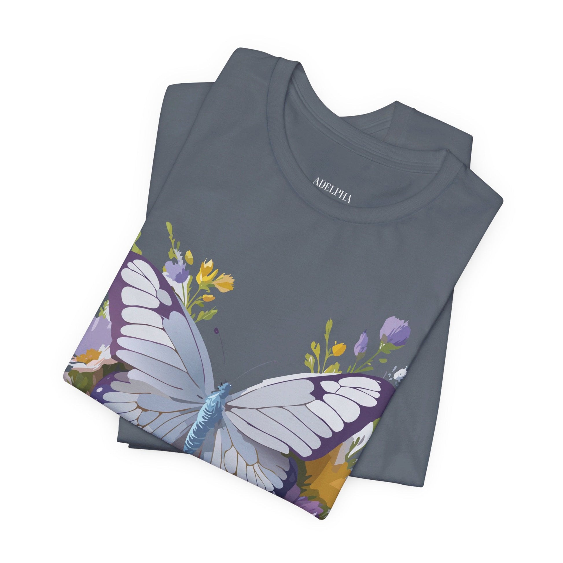 Butterfly Shirt- From Adelpha. Big Sale! FREE Shipping! Each garment is made to order. Lightweight fabric 100% cotton (4.2 oz/yd² (142 g/m²)). Designed and printed in the USA with eco-friendly, non-toxic inks. T Shirt has Durable double-needle stitching and a seamless ribbed collar for comfort and longevity.