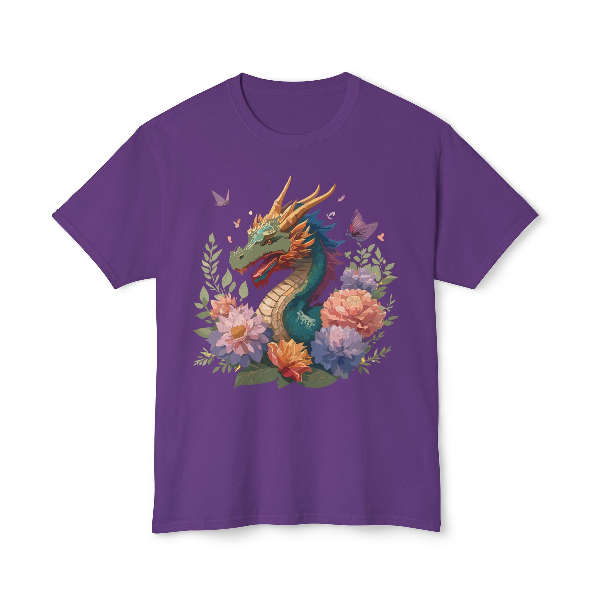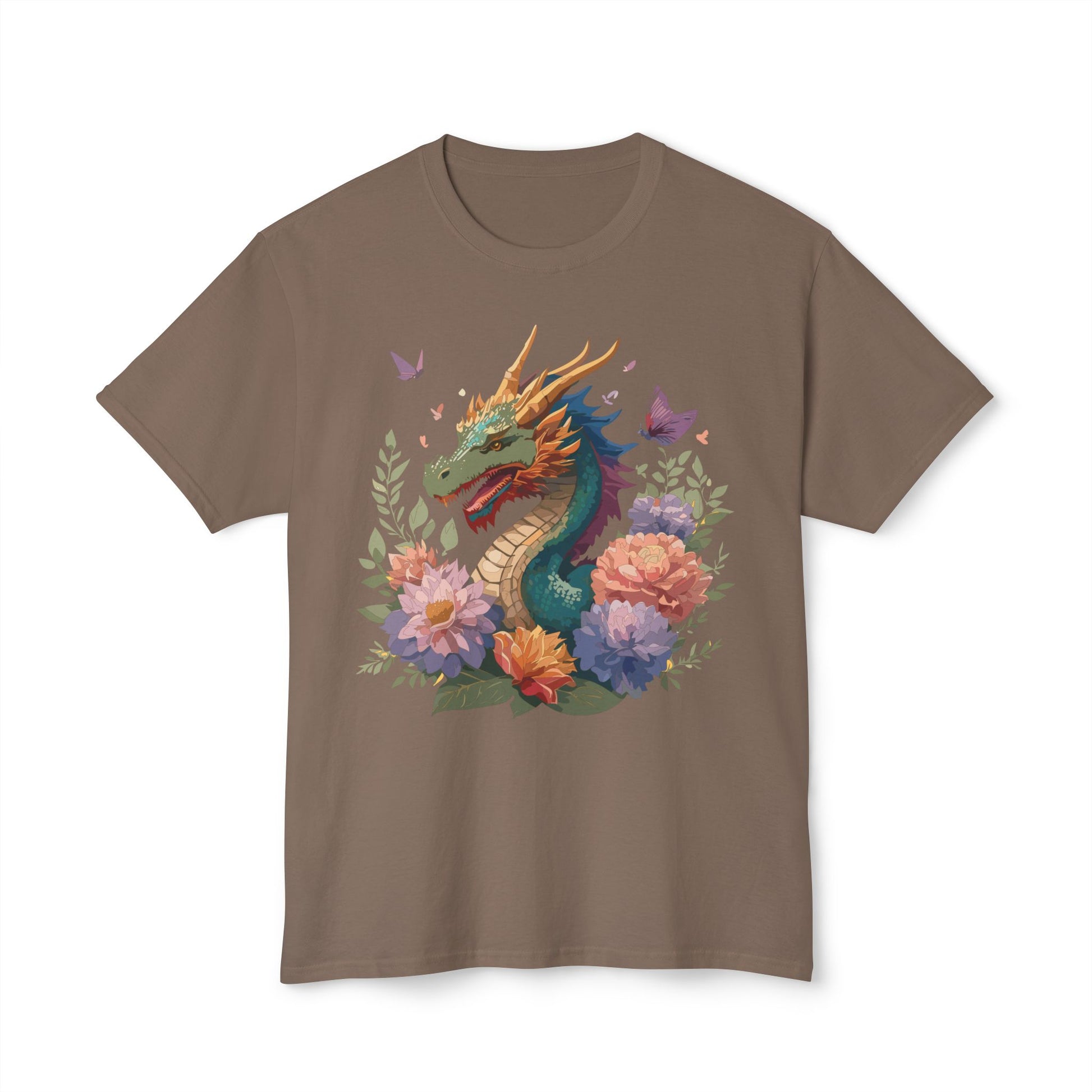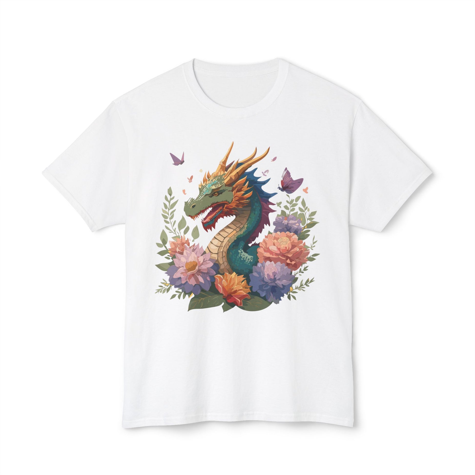 Dragon T-Shirt, Vintage Dragon Tee, Floral Tees, Dragon Art Design Shirt, Tee Shirt with Dragon