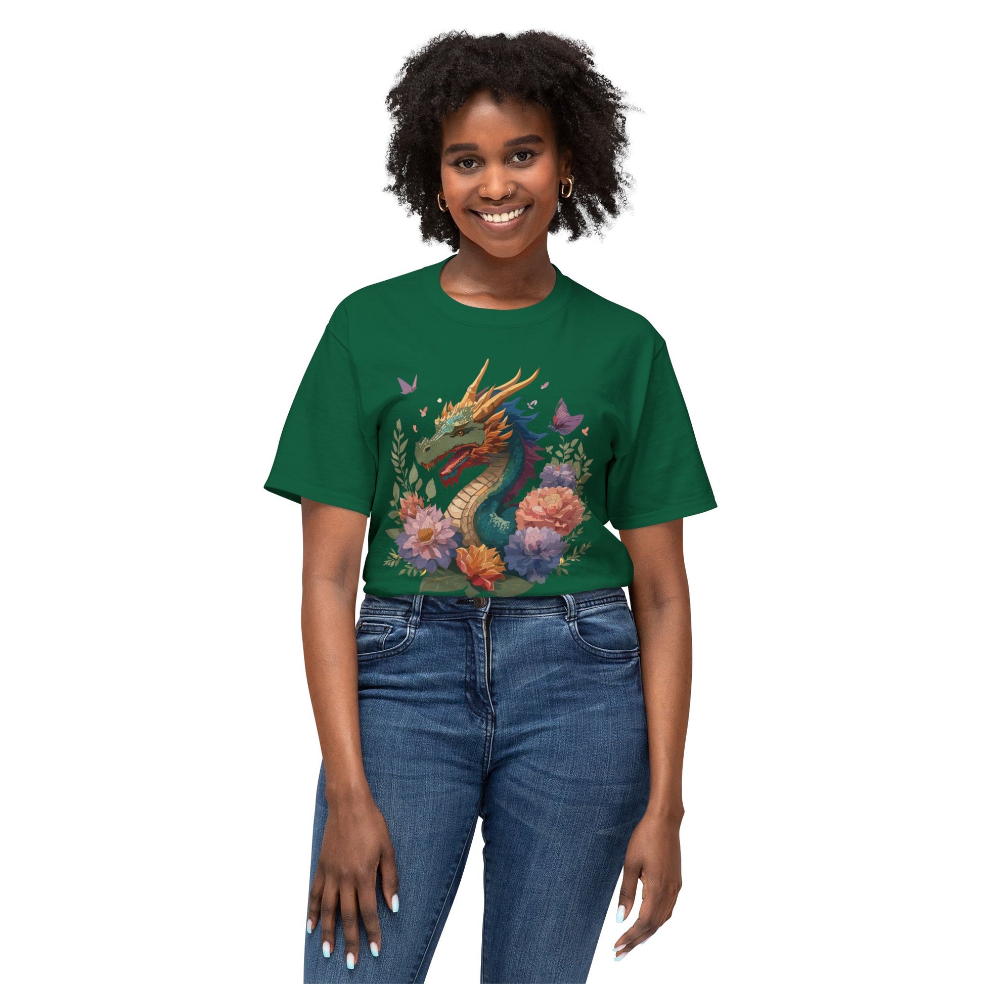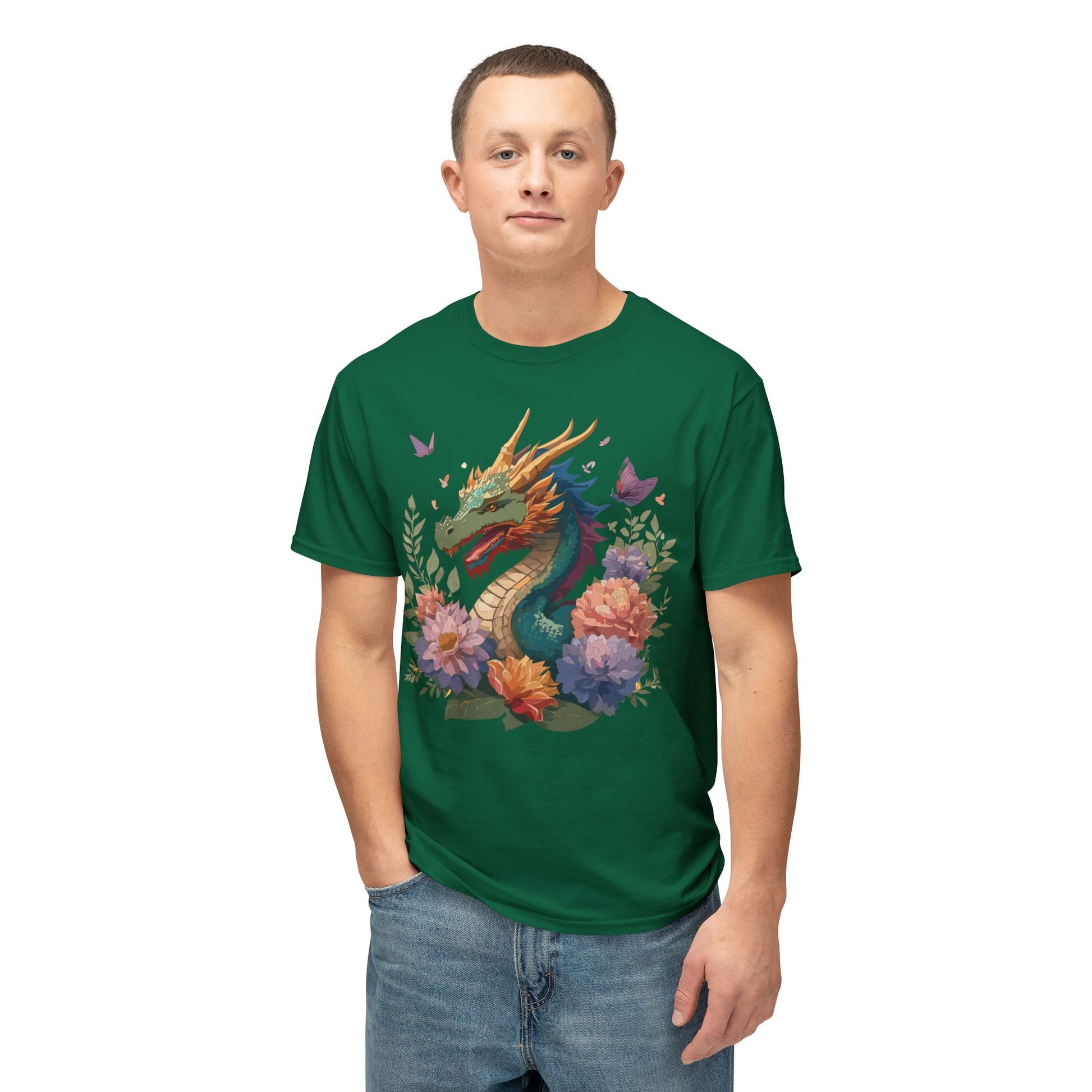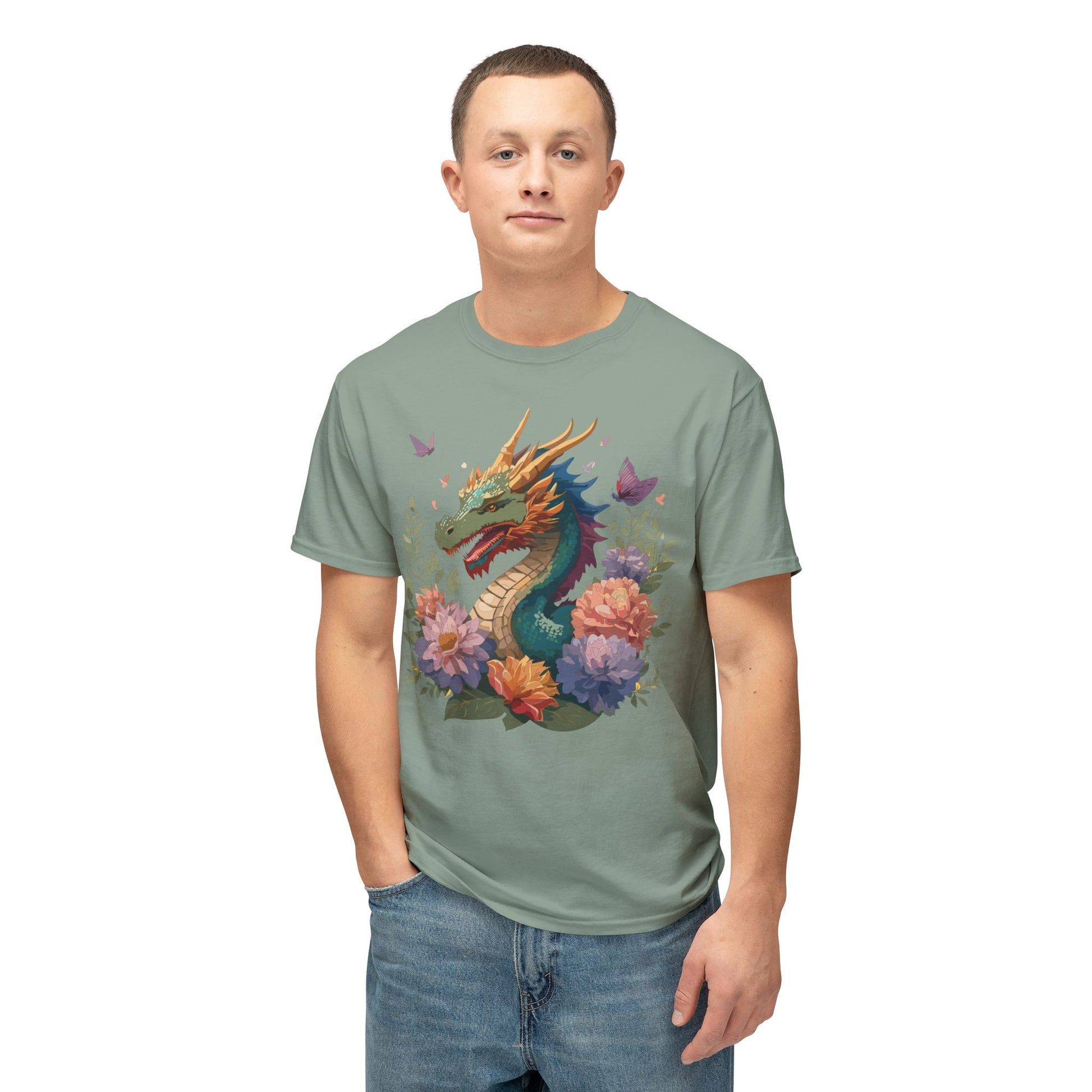 Dragon T-Shirt, Vintage Dragon Tee, Floral Tees, Dragon Art Design Shirt, Tee Shirt with Dragon
