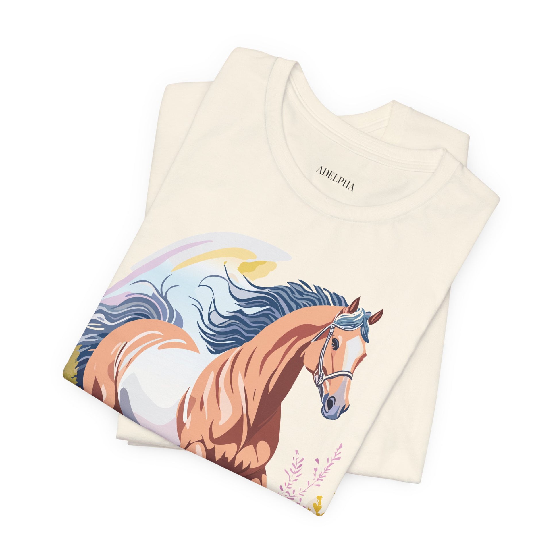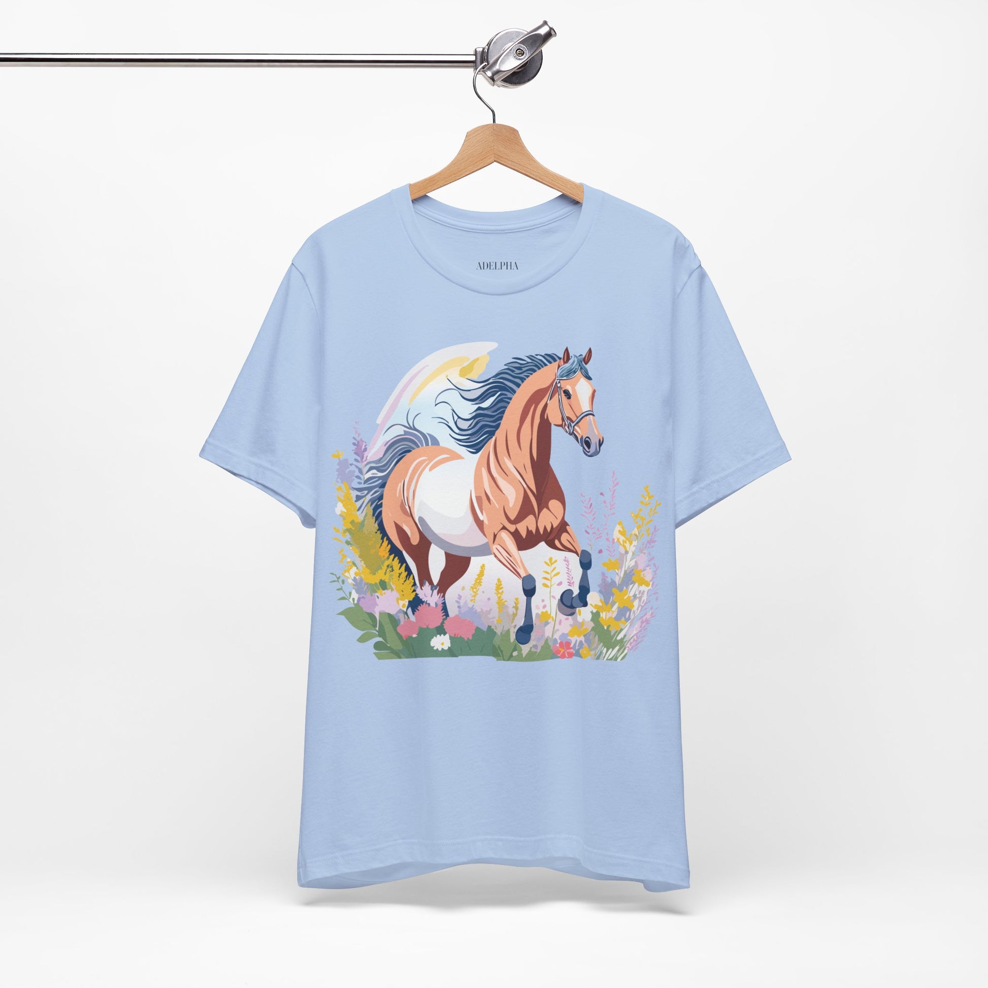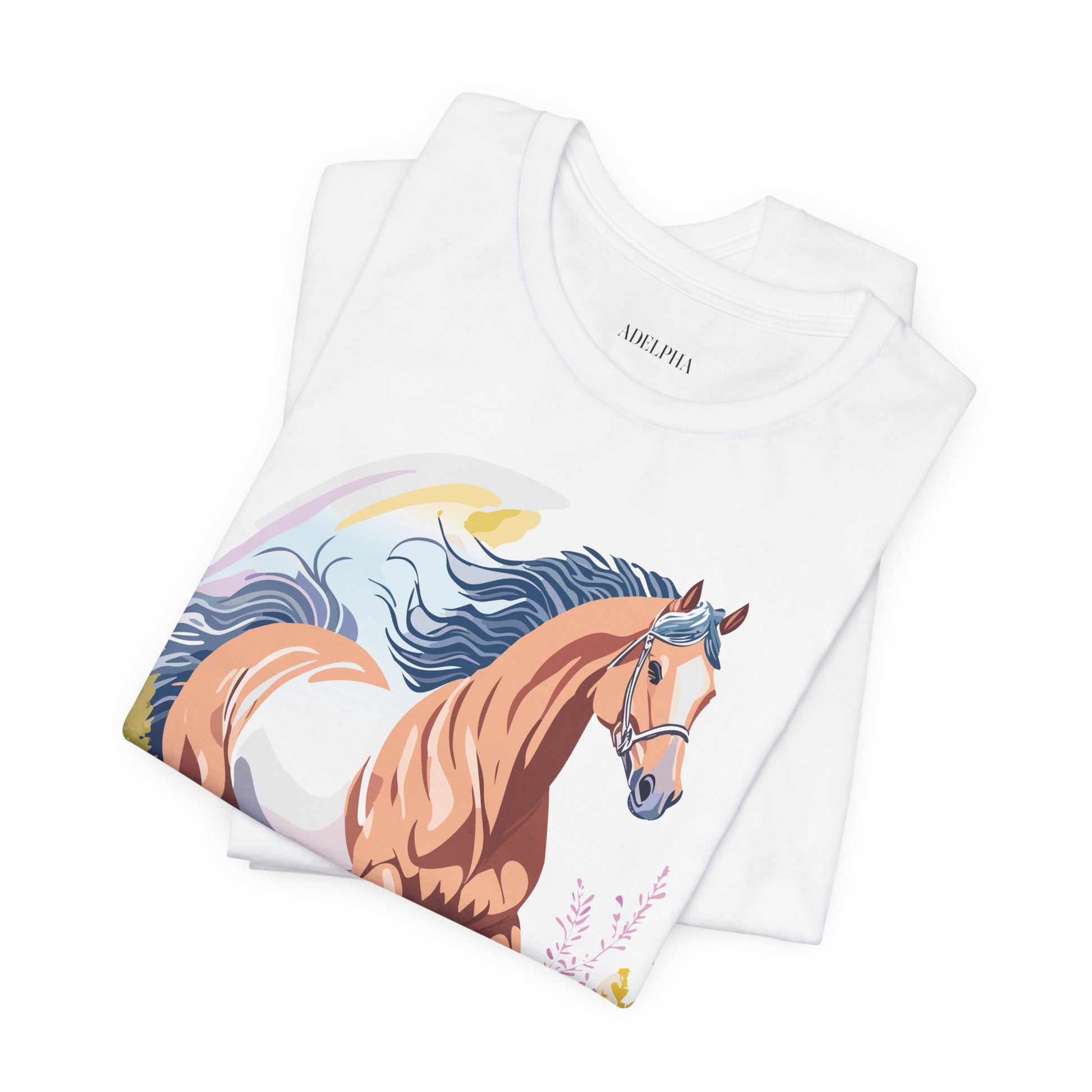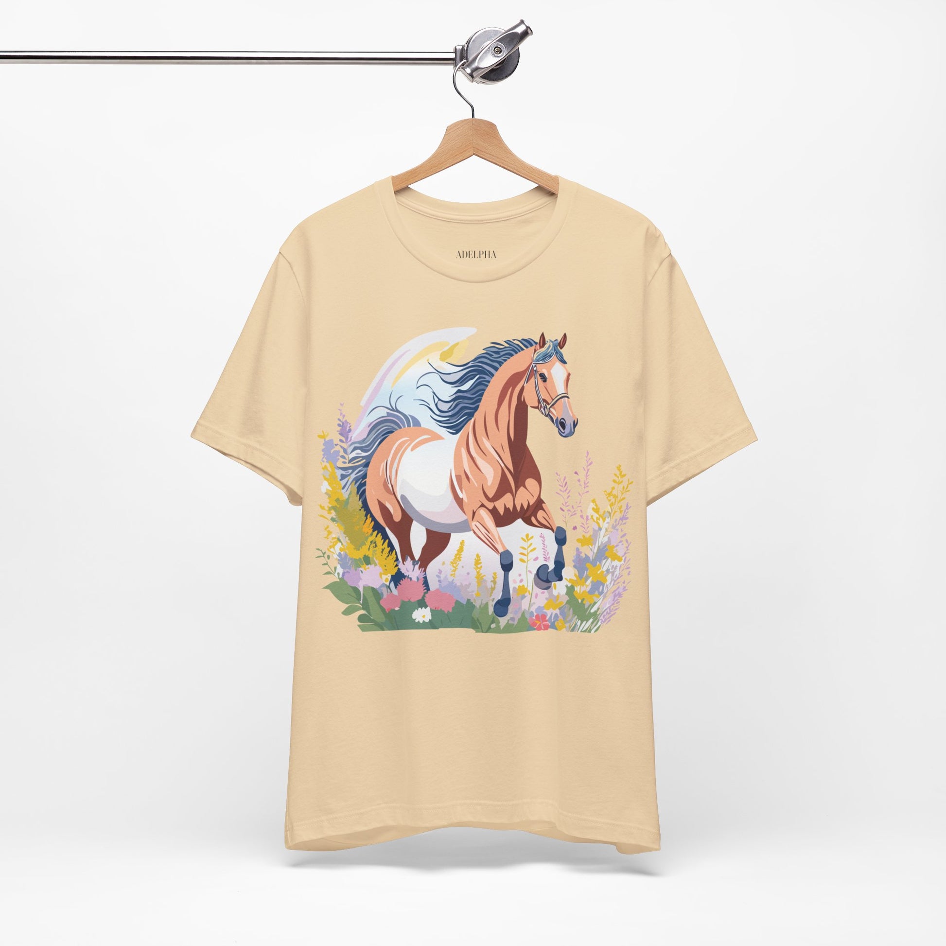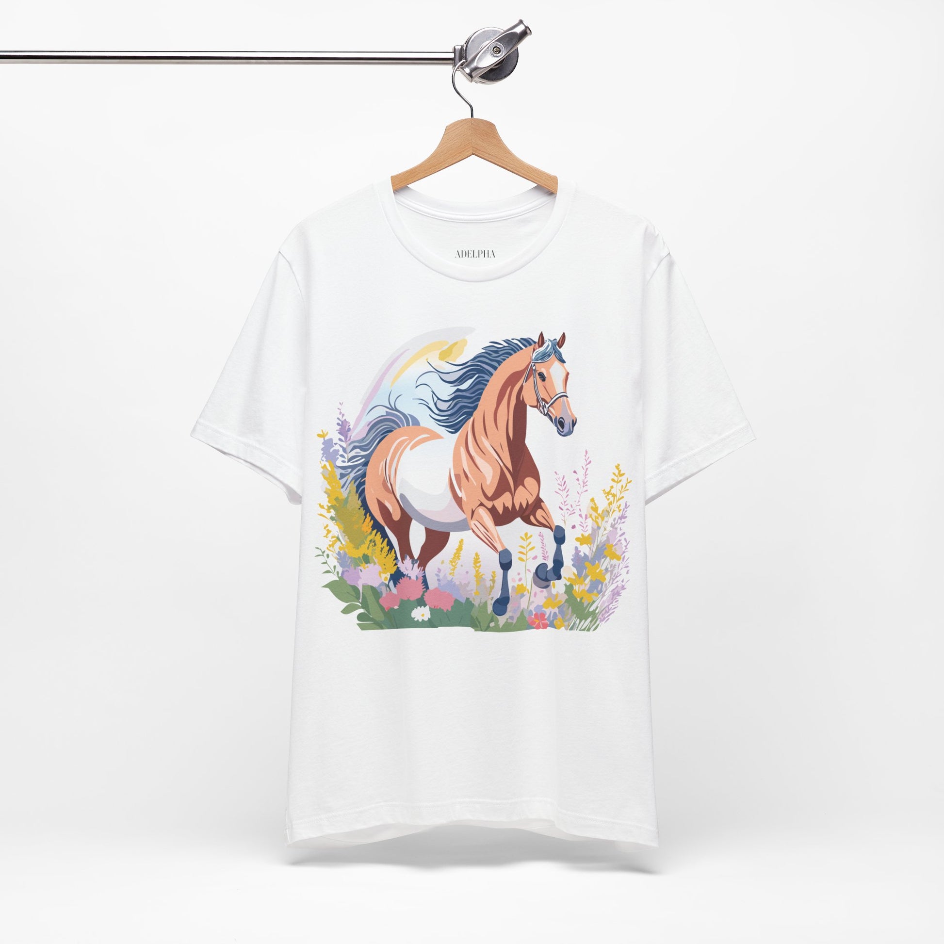 Horse Shirt, Shirt with Horse From Adelpha. Big Sale! FREE Shipping! Each garment is made to order. Lightweight fabric 100% cotton (4.2 oz/yd² (142 g/m²)). Designed and printed in the USA with eco-friendly, non-toxic inks. T Shirt has Durable double-needle stitching and a seamless ribbed collar for comfort and longevity.