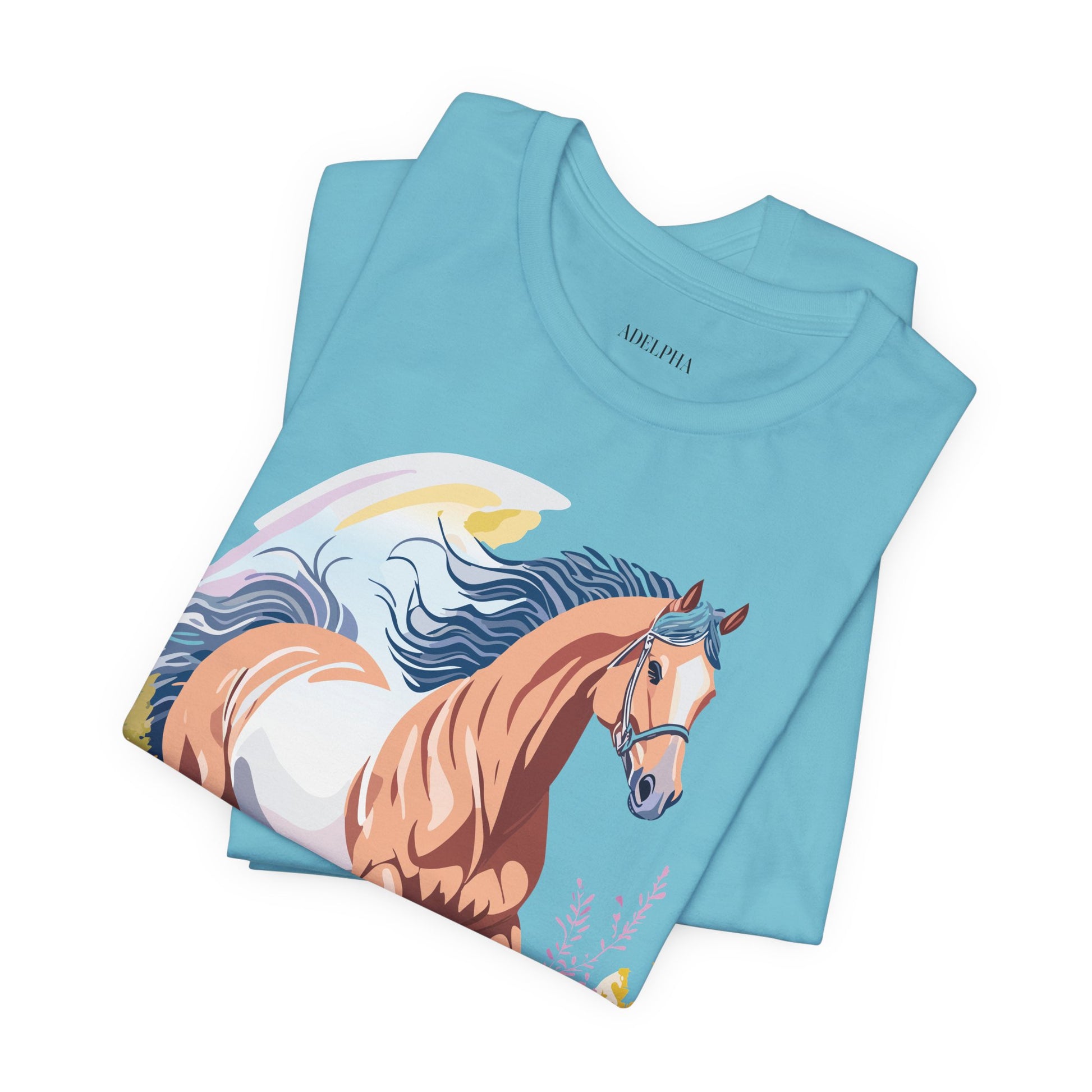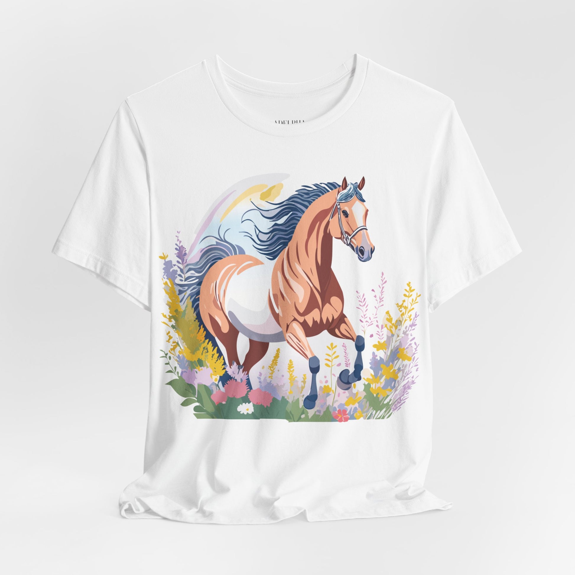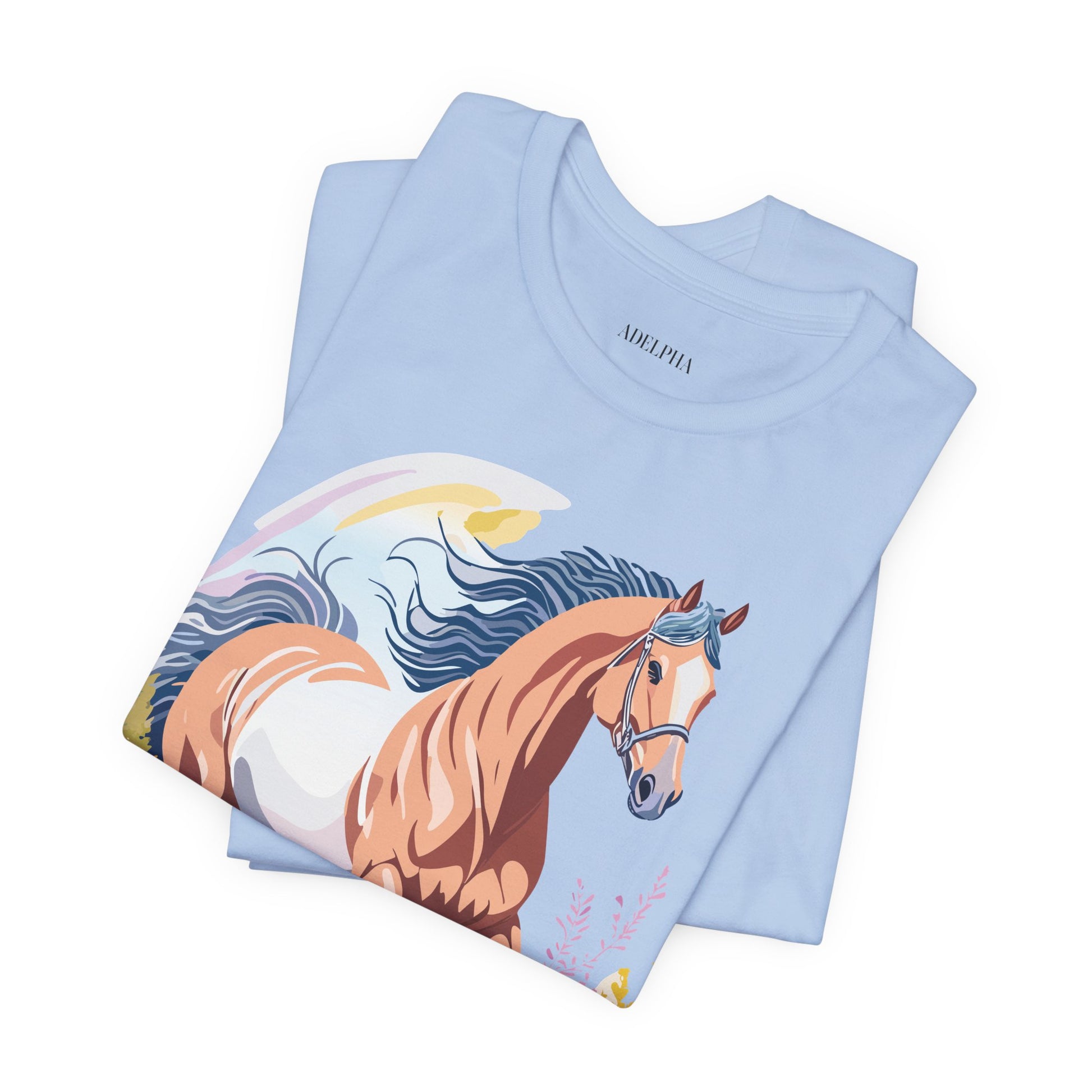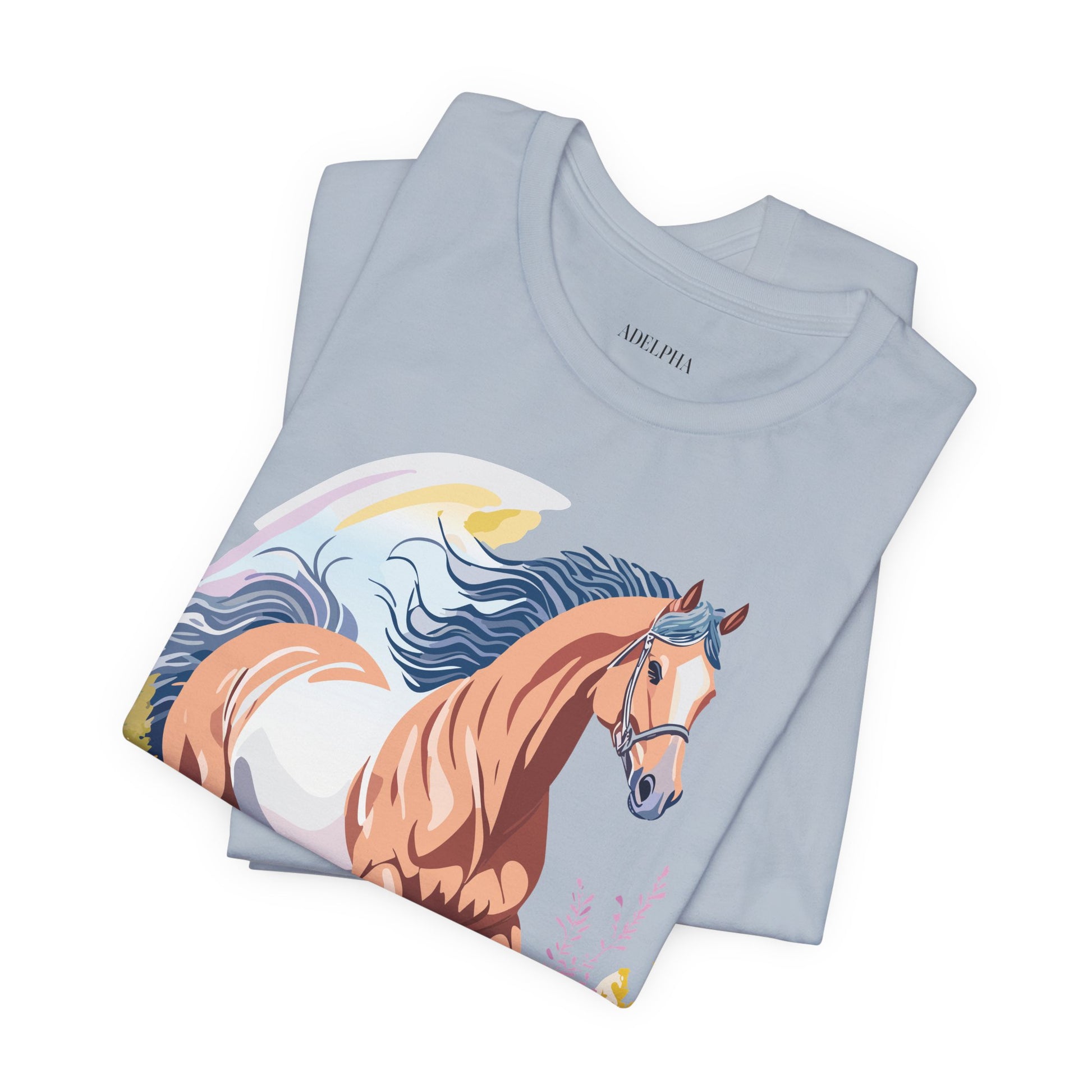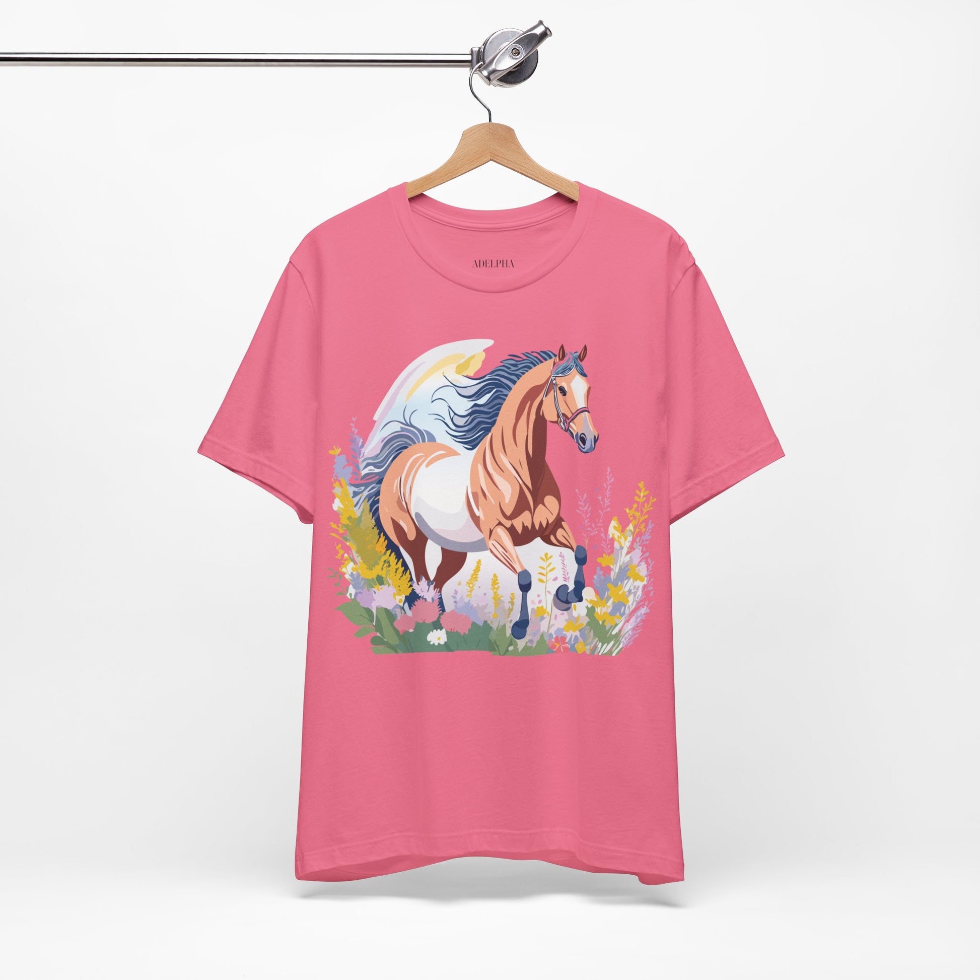 Horse Shirt, Shirt with Horse From Adelpha. Big Sale! FREE Shipping! Each garment is made to order. Lightweight fabric 100% cotton (4.2 oz/yd² (142 g/m²)). Designed and printed in the USA with eco-friendly, non-toxic inks. T Shirt has Durable double-needle stitching and a seamless ribbed collar for comfort and longevity.