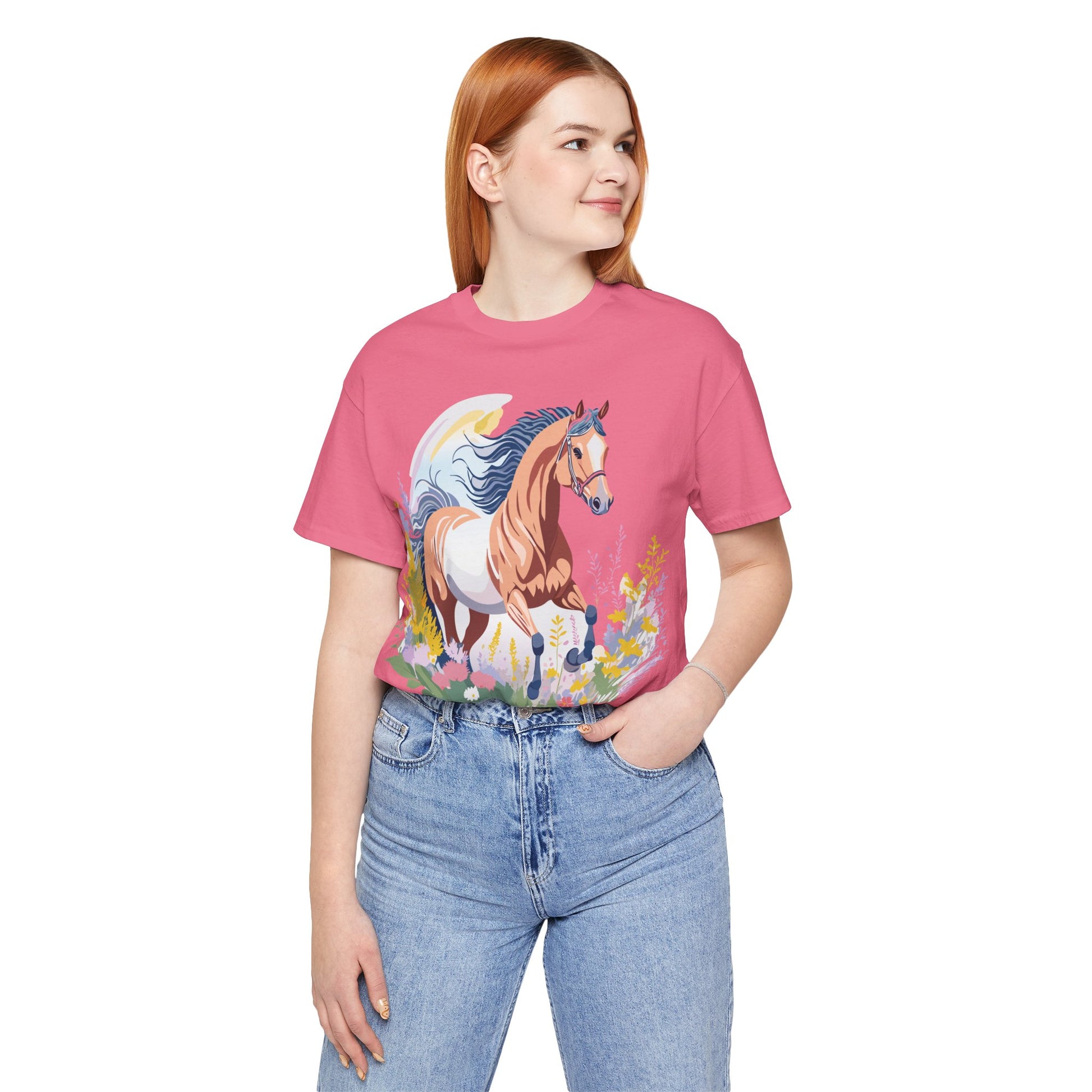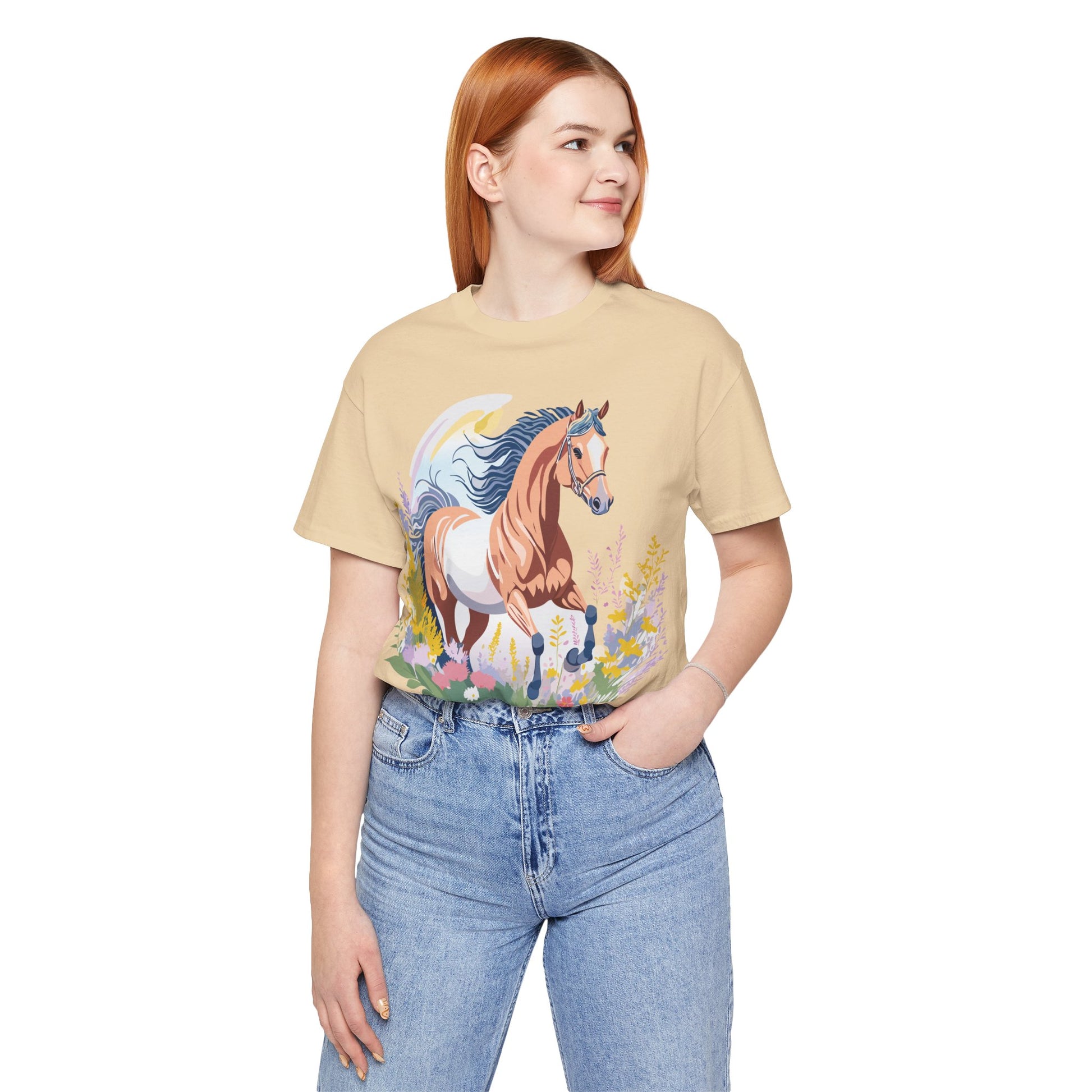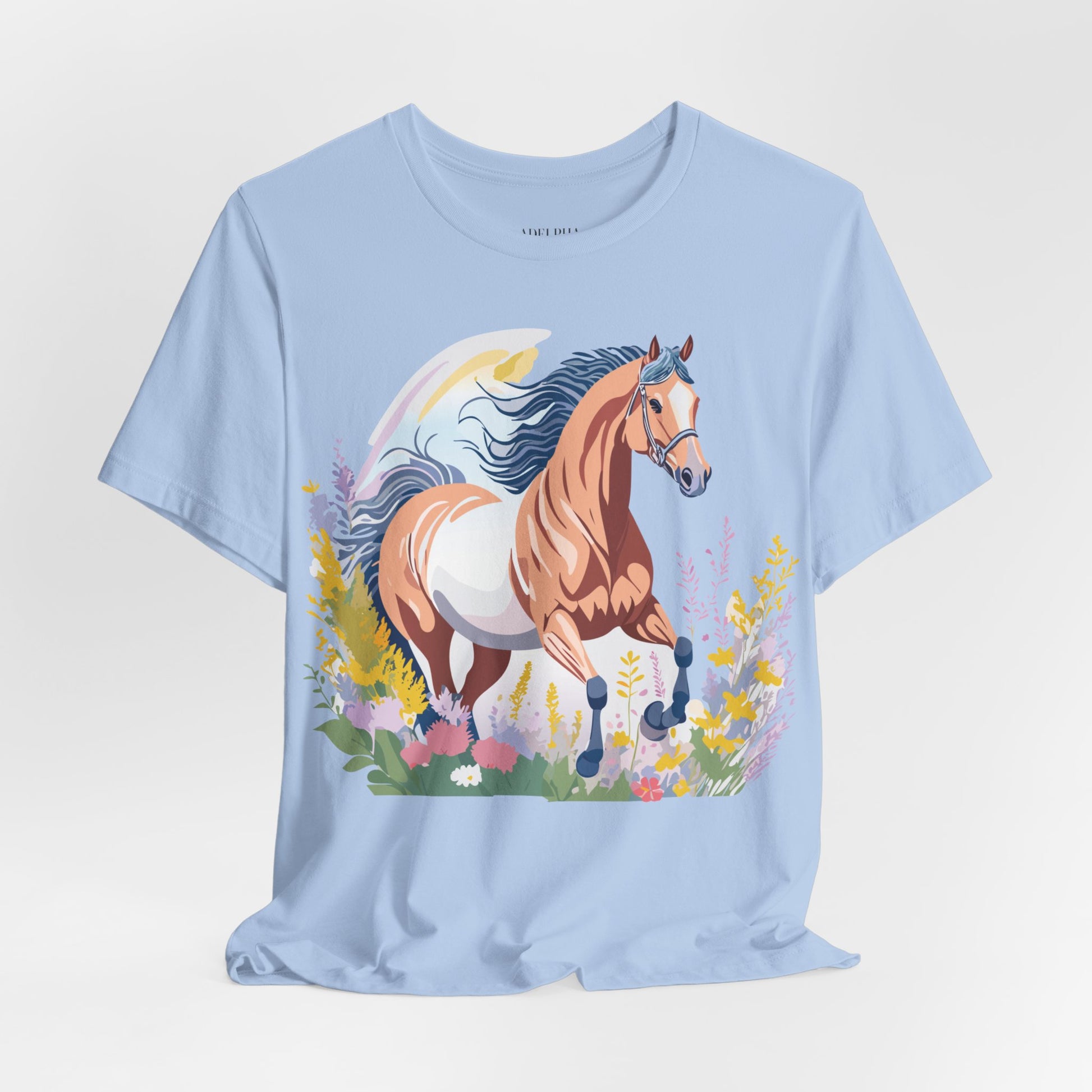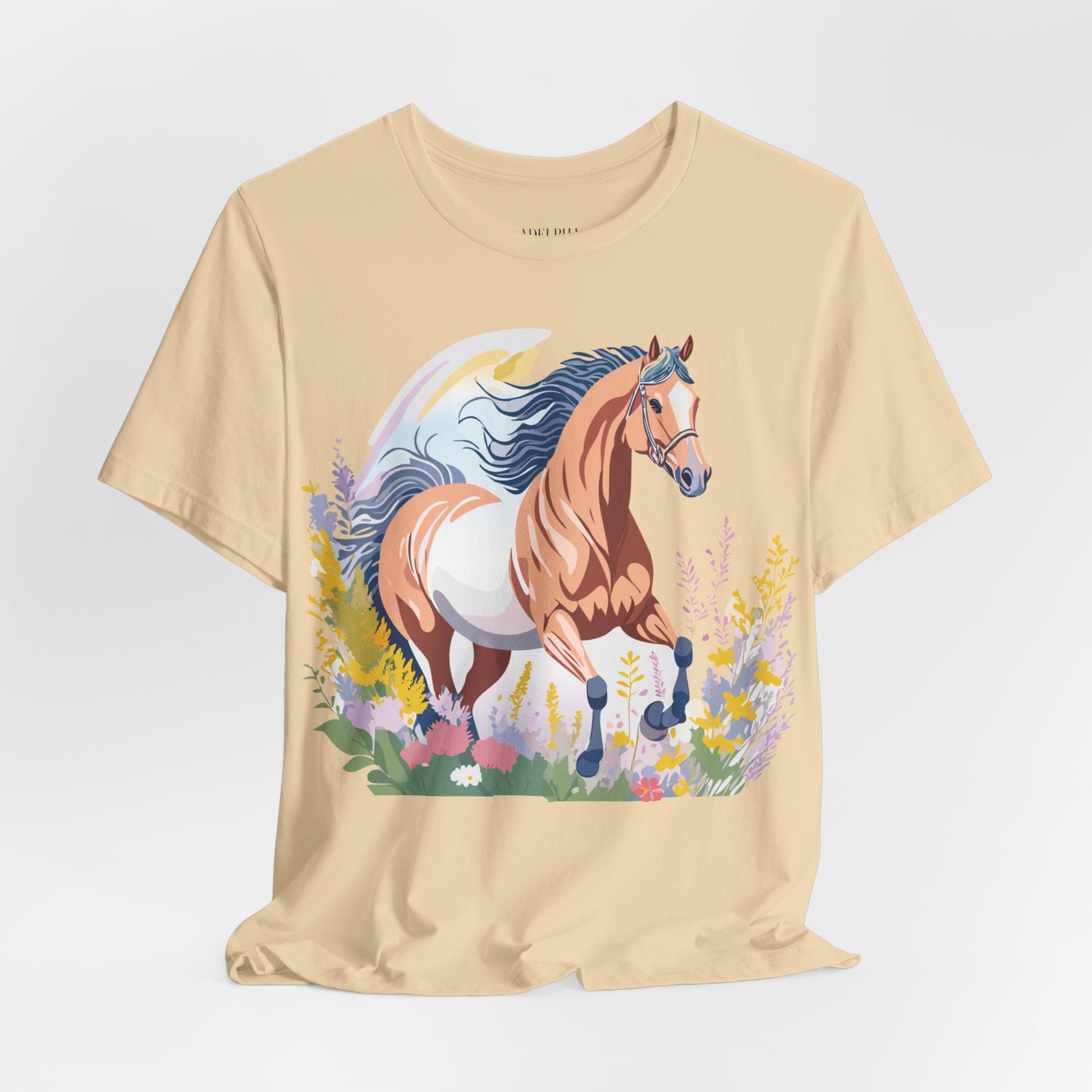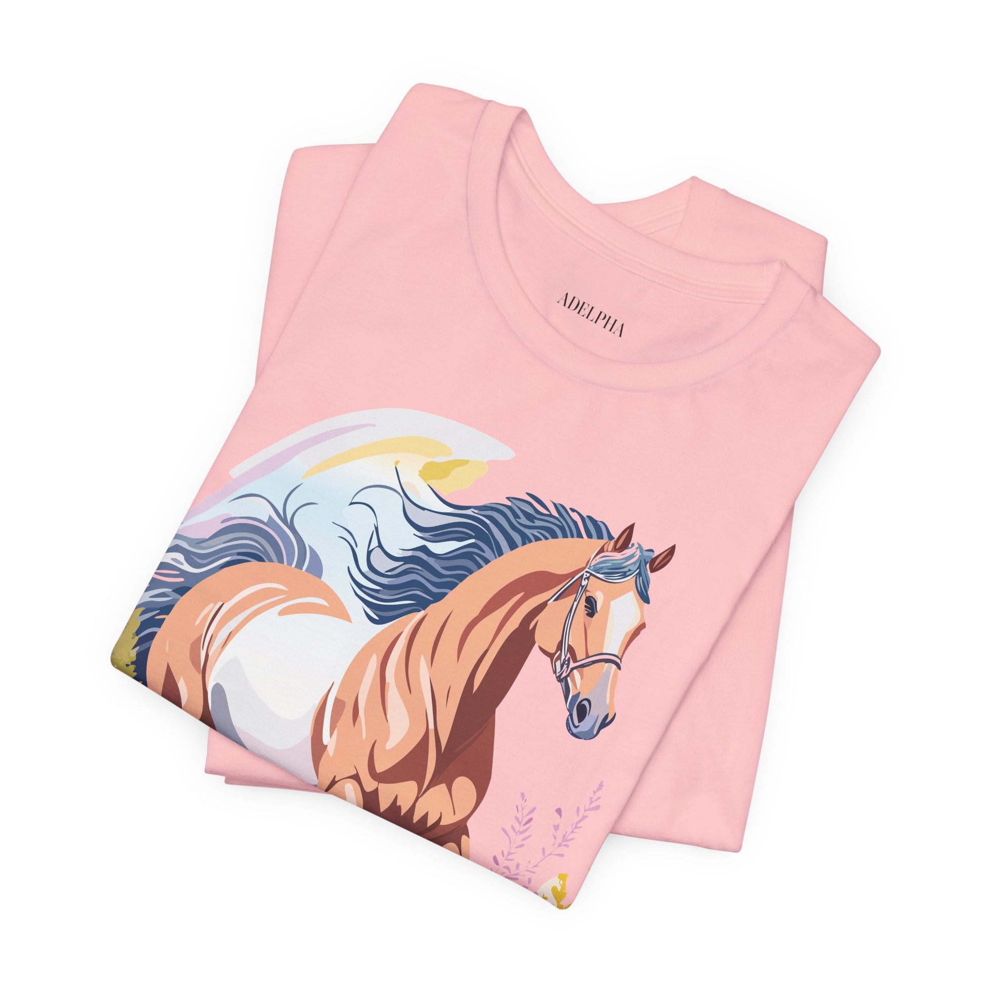 Horse Shirt, Shirt with Horse From Adelpha. Big Sale! FREE Shipping! Each garment is made to order. Lightweight fabric 100% cotton (4.2 oz/yd² (142 g/m²)). Designed and printed in the USA with eco-friendly, non-toxic inks. T Shirt has Durable double-needle stitching and a seamless ribbed collar for comfort and longevity.