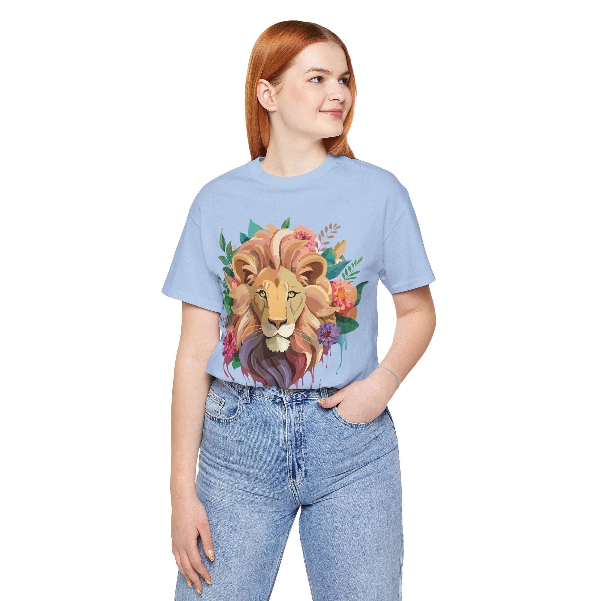Lion Shirt, Shirt with Lion From Adelpha. Big Sale! FREE Shipping! Each garment is made to order. Lightweight fabric 100% cotton (4.2 oz/yd² (142 g/m²)). Designed and printed in the USA with eco-friendly, non-toxic inks. T Shirt has Durable double-needle stitching and a seamless ribbed collar for comfort and longevity.